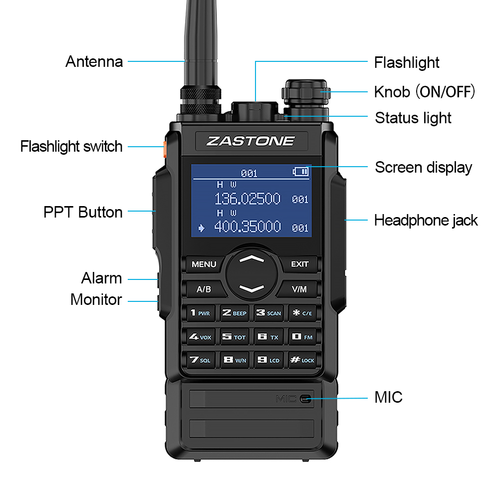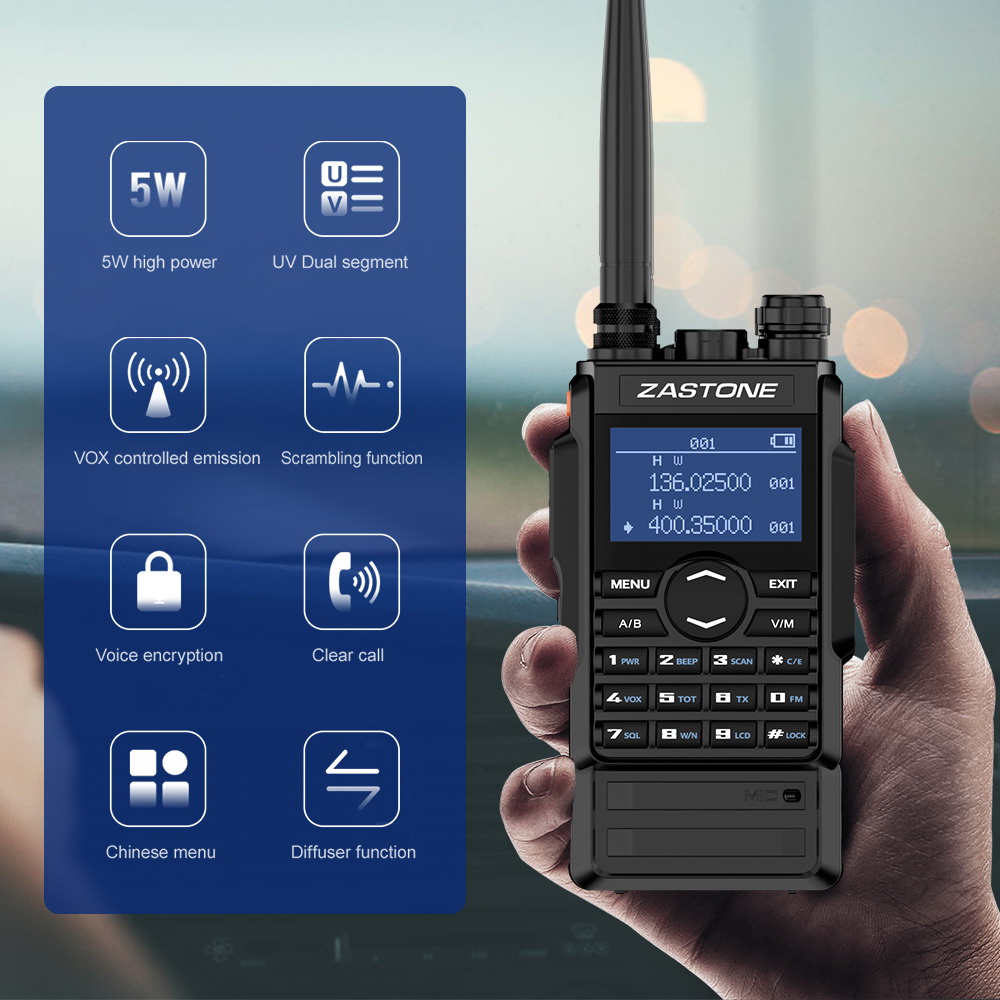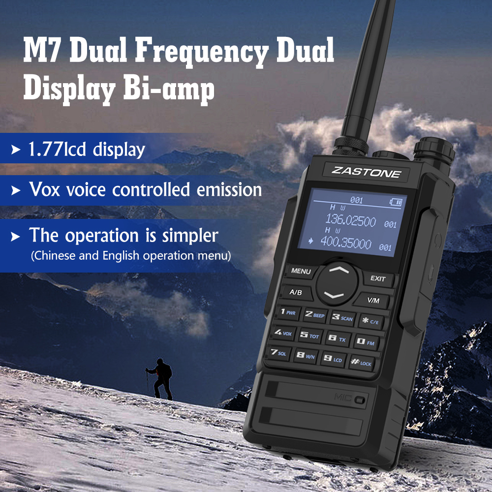 Zastone M7 dual band 5W walkie talkie 136-174 400-480mhz 250 channels 2600mah battery hf transceiver ham radio